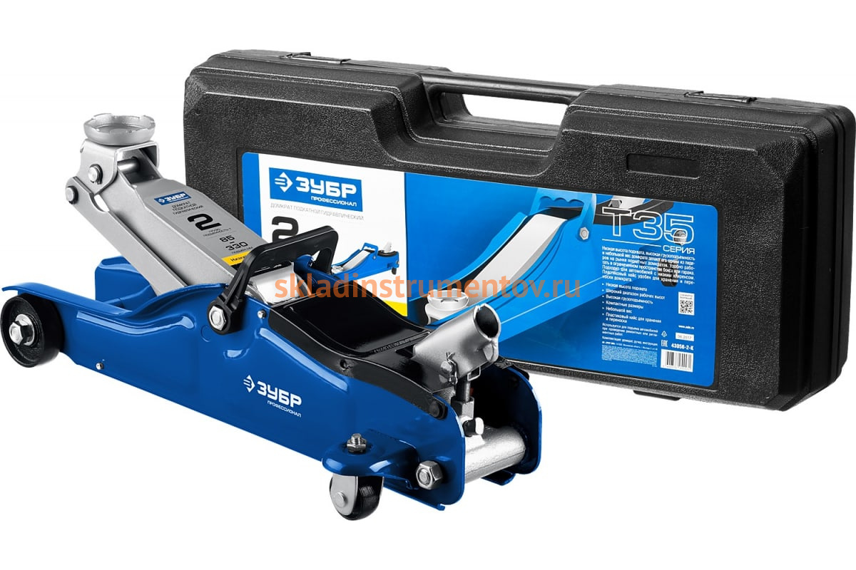 Гидравлический подкатной домкрат 2т, 85-330мм, в кейсе, ЗУБР Профессионал T35 43056-2-K обладает хорошей грузоподъемностью, которая обеспечивает эффективную работу в автомастерской при обследовании подвески и ходовой автомобиля.