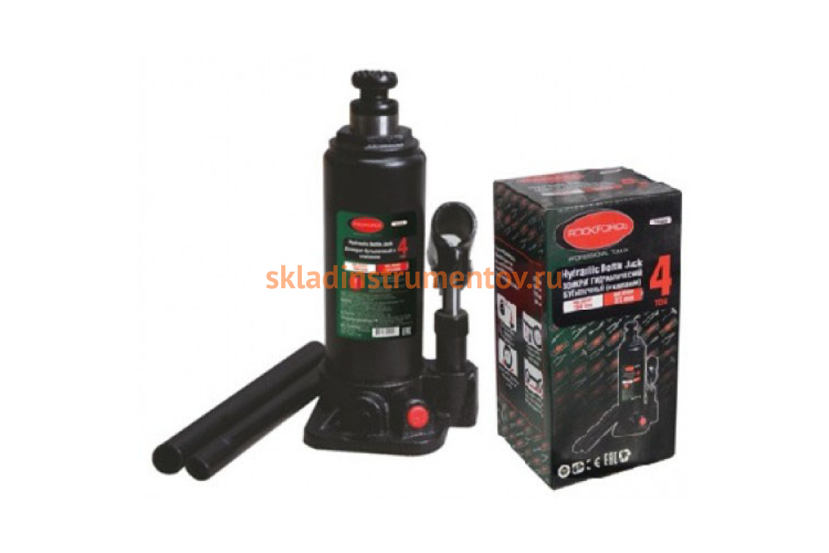 —Домкрат ROCKFORCE гидравлический бутылочный с клапаном 4т высота подъема 194-372мм RF-T90404—