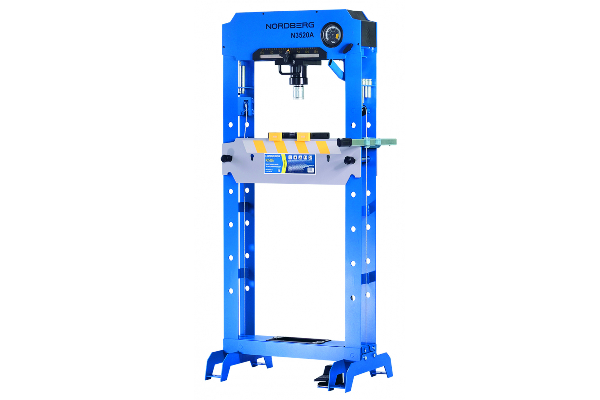 Пресс с пневмоприводом NORDBERG PRO 20 т N3520A является удобным приспособлением, пользующимся популярностью в профессиональных автосервисах и мастерских. Позволяет создать давление в 20 тонн без физических усилий пользователя. Модель оснащена регулируемым столом, манометром для контроля нагрузки, педалью управления пневмонасосом. Специальные фиксаторы предотвращают соскальзывание рабочих насадок. Нижняя часть троса защищена от попадания обрабатываемых материалов. Порошковая окраска корпуса предотвращает коррозию. Ширина стола – 505 мм.