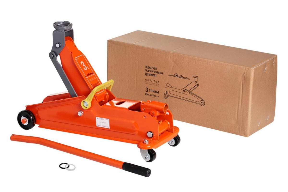 Подкатной домкрат Airline AJ-3F-385 (133 - 385 мм, 3 т) имеет жесткую конструкцию и способен выдержать значительные нагрузки. Устройство используется в автомастерских, на станциях технического обслуживания автомобилей или в гараже. Модель оснащается эргономичной рукоятью, благодаря которой осуществляется легкое управление.