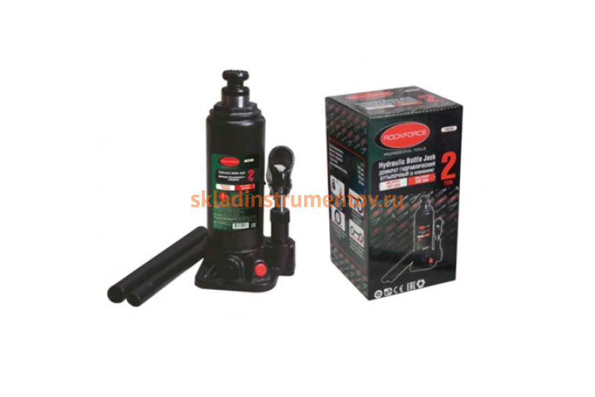 —Домкрат ROCKFORCE гидравлический бутылочный с клапаном 2т высподъема 181-345мм RF-T90204
