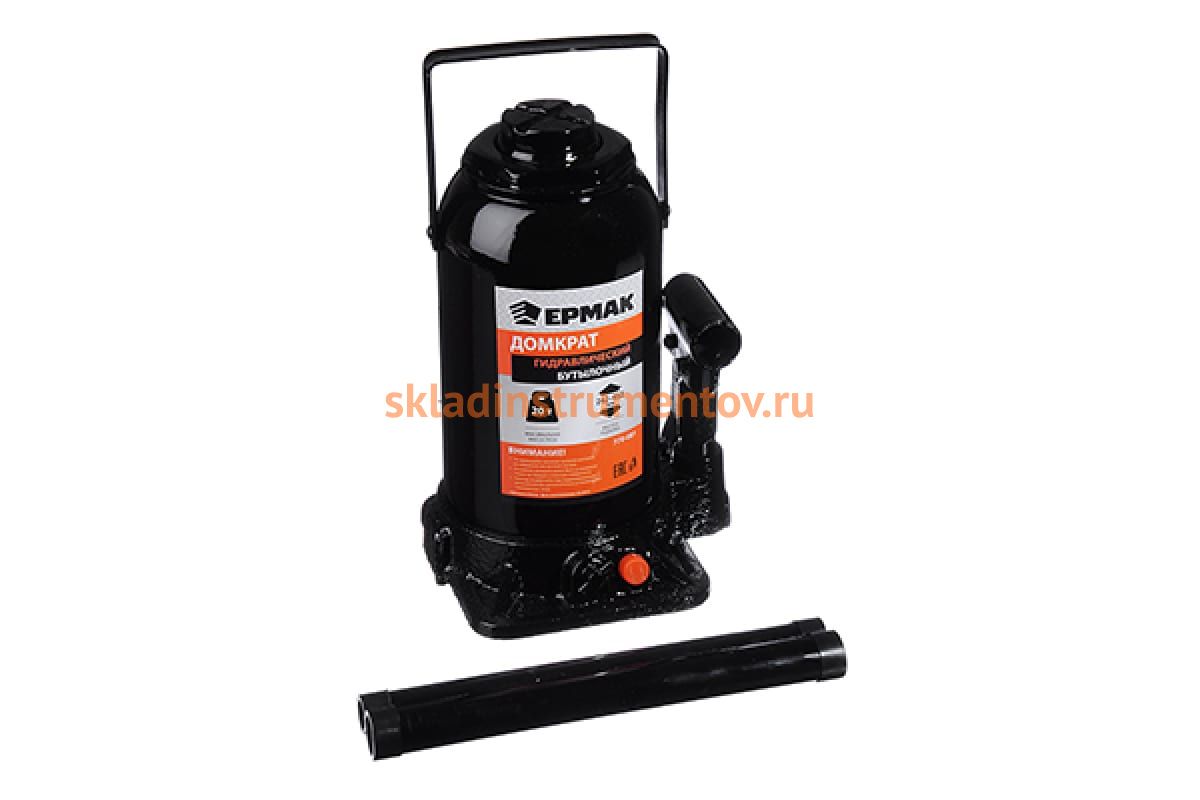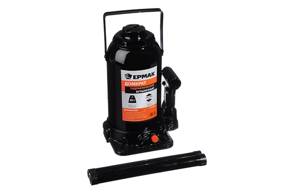 Гидравлический бутылочный домкрат ЕРМАК 20 т, 42-452 мм 770-081 предназначен для поднятия транспорта и других грузов весом до 20 тонн на заданную высоту. Модель надежна, отличается плавностью хода и простотой эксплуатации. Само устройство домкрата позволяет оператору поднять груз без каких-либо серьезных усилий. Для удобства переноски на корпусе модели предусмотрена ручка.