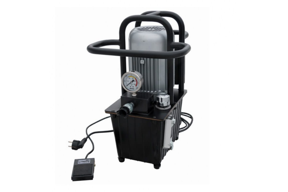 Электрогидравлическая помпа КВТ ПМЭ-7050 69291 - устройство, способное вырабатывать давление в 700 бар для работ с различным гидравлическим оборудованием. Управление установкой происходит за счет ножного дистанционного пульта. Агрегат работает от сети напряжением 220 В. Модель оснащается манометром, устойчивым к вибрациям, для контроля давления в системе. Протекторы мотора образуют конструкцию, благодаря которой помпу удобно переносить.