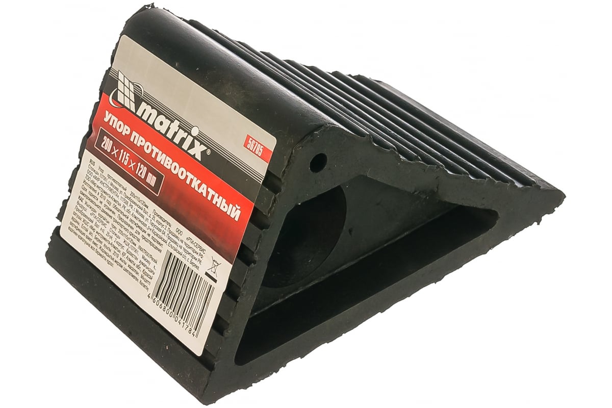 Противооткатной упор MATRIX 200х115х120 мм 56785 изготовлен из морозостойкой технической резины. Приспособление служит в качестве упора для колеса, с целью предотвращения отката автомобиля при подъеме его домкратом. Размер - 200х115х120 мм.