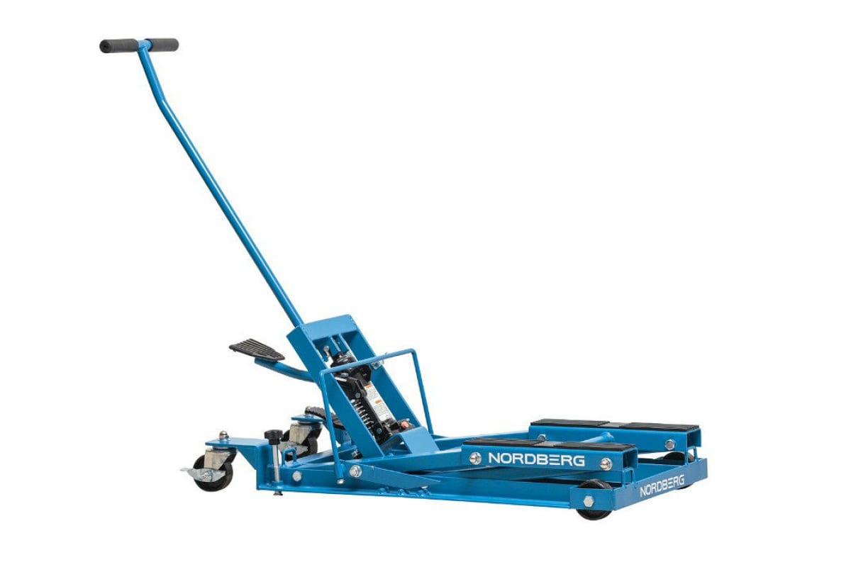 Подкатной домкрат для мотоцикла NORDBERG N32007 отличается плавностью хода во время подъема или опускания. Ремни дают возможность надежно зафиксировать транспорт на оборудовании для установки или снятия колеса. Четыре точки опоры гарантируют устойчивость конструкции. Ножной гидравлический привод позволяет выполнять операции с минимальными усилиями оператора. Ручка эргономичной формы предназначается для надежного захвата и способствует легкости управления аппаратом. Колеса служат для мобильности, а наличие тормозов обеспечивает безопасность эксплуатации.