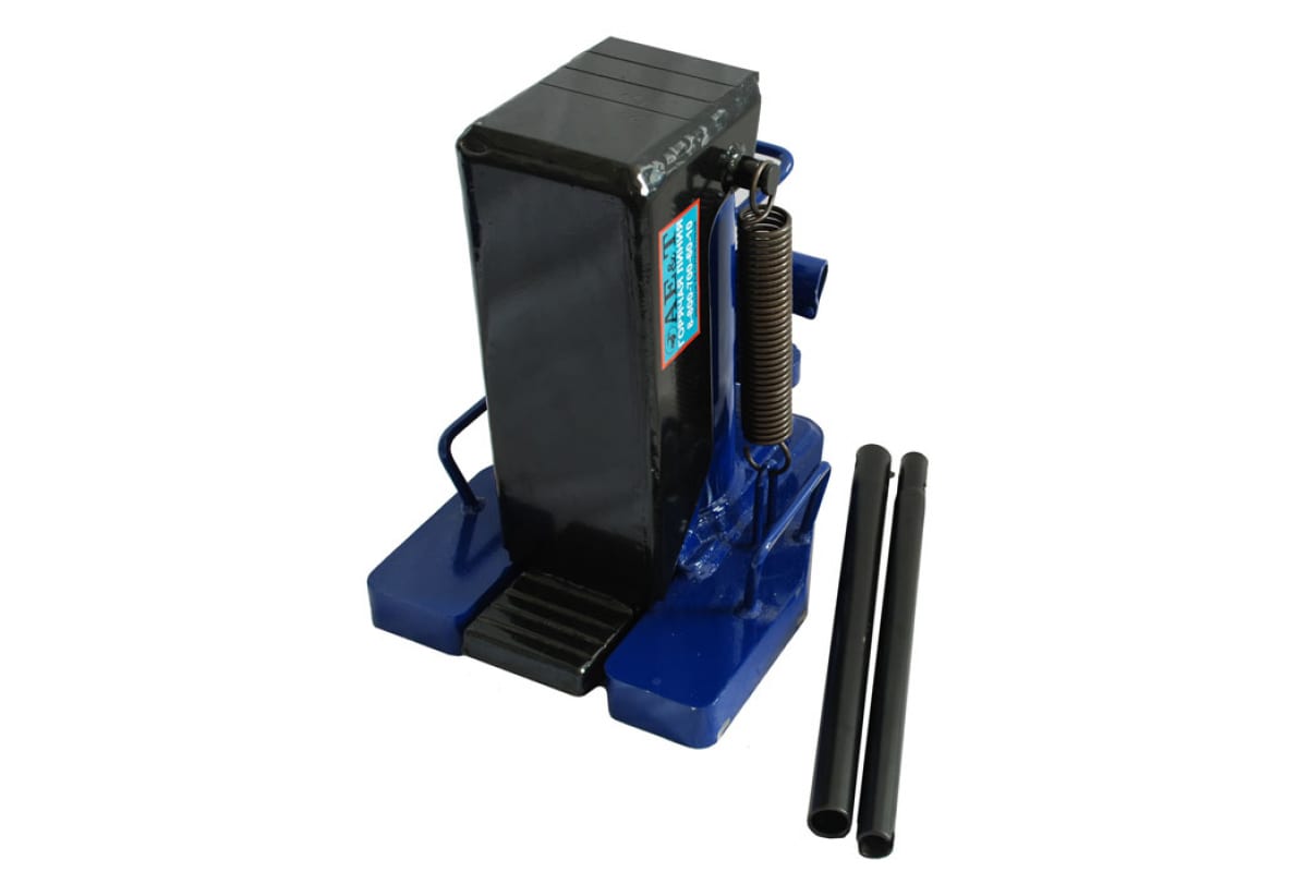 Для удобства работы рукоятка разделена на две части, что существенно упрощает эксплуатацию домкрата. Переноску обеспечивают две стальных рукоятки, приваренных к опоре.