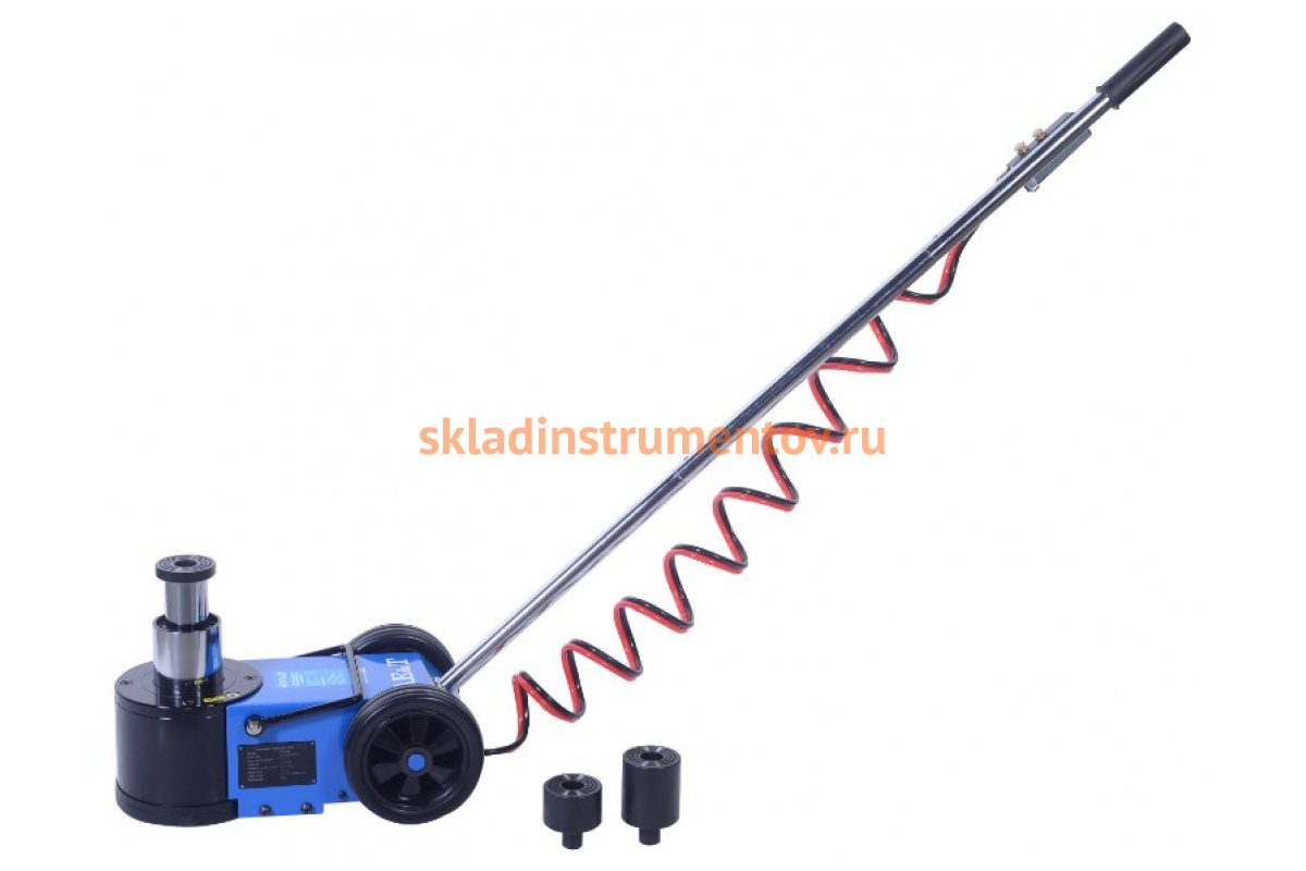 Пневмогидравлический подкатной домкрат AE&T S30-2ML - профессиональная модель для обслуживания автобусов, самолетов, военной техники. Величина максимально возможного подъема площадки складывается из базовой высоты домкрата (150 мм), высоты первого выдвижного штока (73 мм), высоты второго выдвижного штока (66 мм) и высоты двух адаптеров (75 мм и 45 мм). При работе с грузами массой 30 тонн допускается задействование первого штока, 15 тонн - первого и второго.