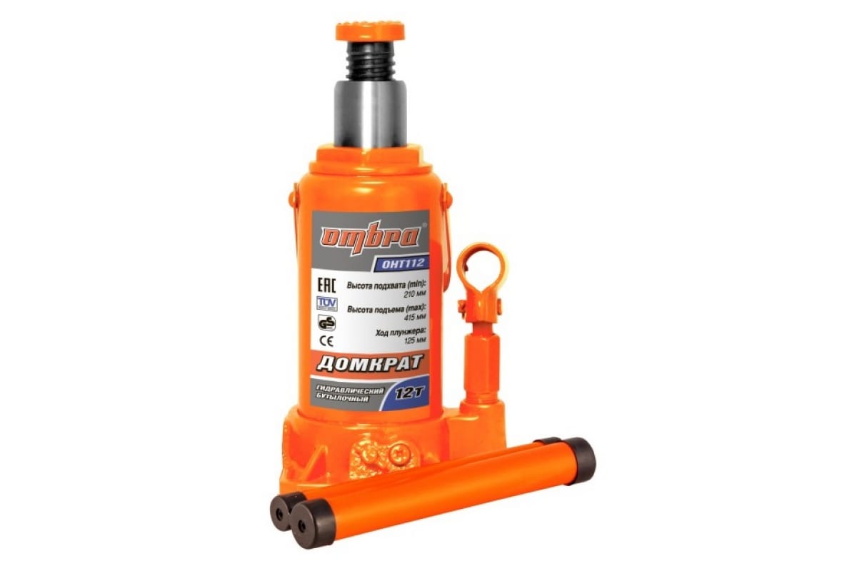Гидравлический домкрат Ombra OHT112 12 т., 210-415 мм 55414 - простое приспособление, предназначенное для подъема грузов общей массой до 12 тонн. Изделие не содержит движущихся узлов и частей. Во время подъема груз не будет соскальзывать, благодаря рифленой поверхности штока. Рукоятка поршневого насоса оптимальной длины облегчает физический труд. Домкрат прост в использовании и не требует специального обслуживания. Диаметр верхней части пяточки на штоке - 40мм.