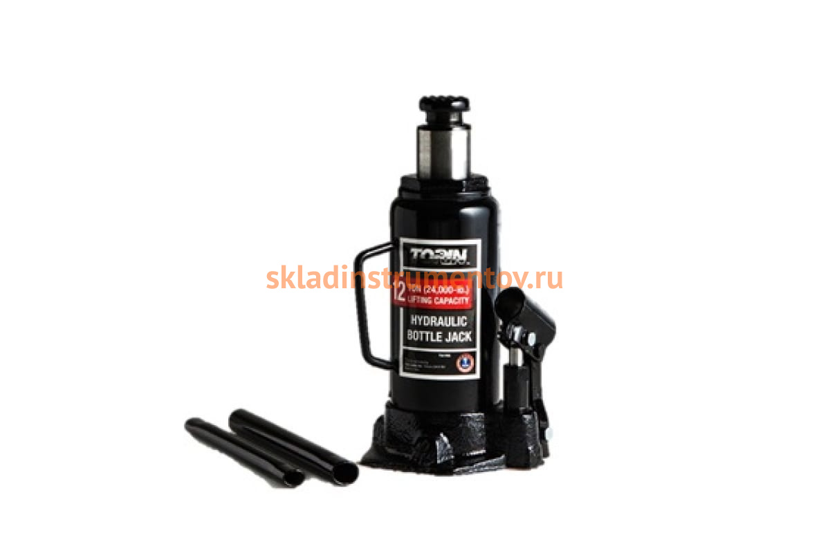 Бутылочный гидравлический домкрат TORIN T91203 используют для поднятия и удерживания больших грузов массой до 12 тонн.