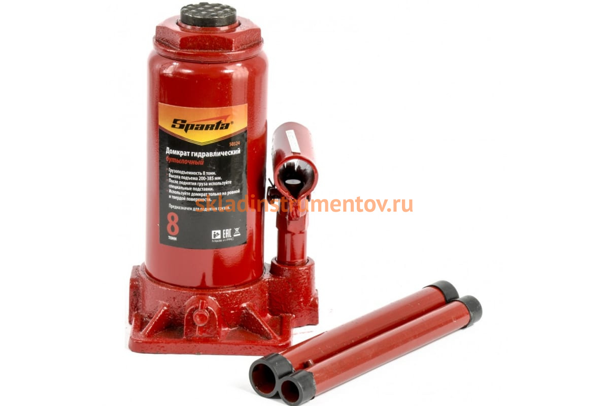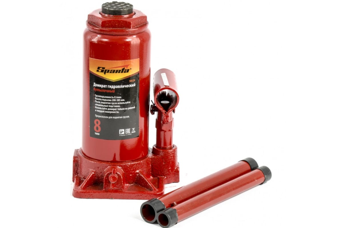 Гидравлический бутылочный домкрат SPARTA 50324 - универсальное приспособление, которое применяется для подъема и перемещения различных грузов. Домкрат работает по гидравлическому принципу. Данный инструмент подходит только для вертикального подъема. Небольшие габариты позволяют с легкостью перевозить изделие в багажнике легкового автомобиля. Корпус домкрата одновременно является и направляющим цилиндром для выдвигаемого поршня, и резервуаром для гидравлической жидкости.