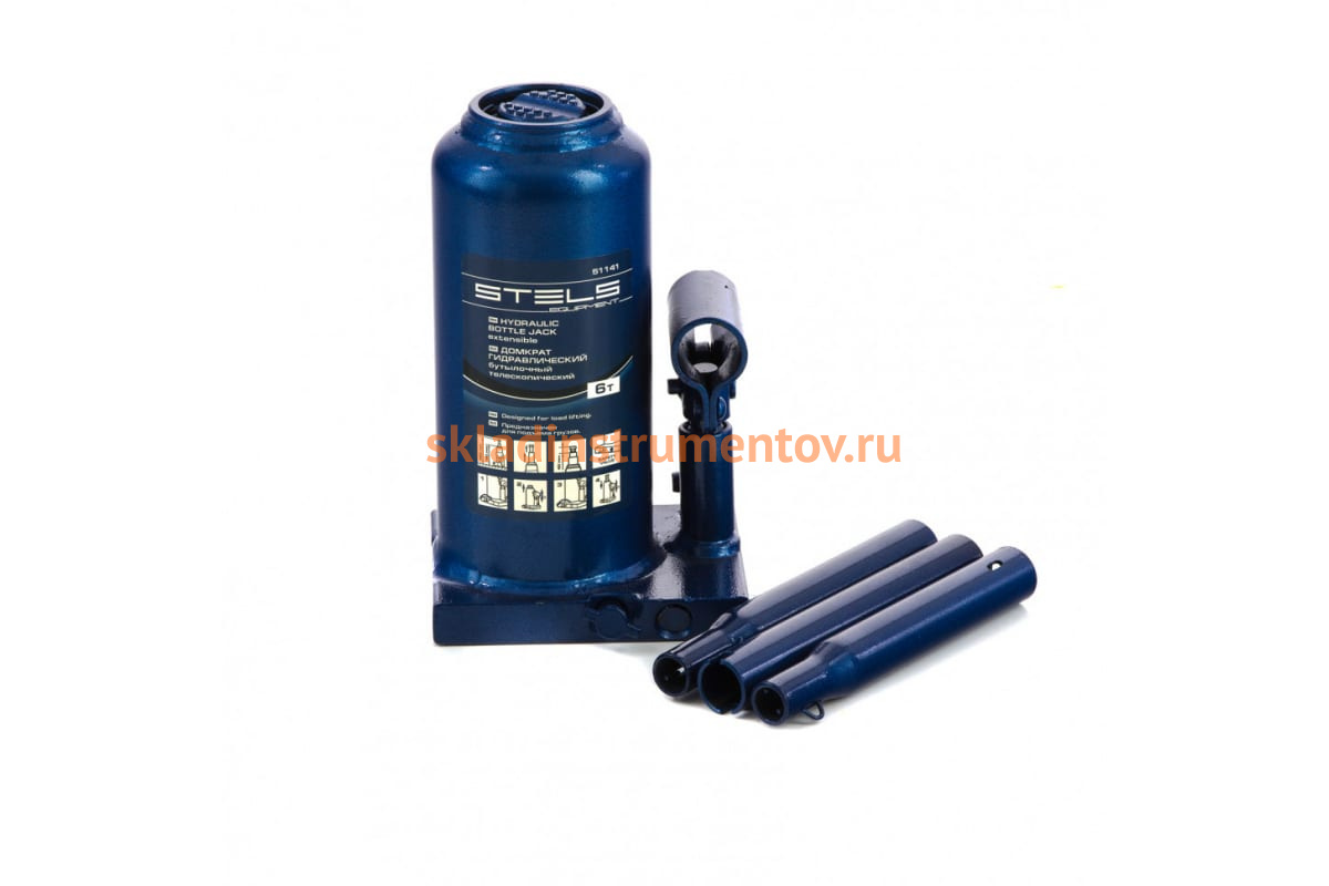 Гидравлический бутылочный телескопический домкрат 6 т, STELS 51141 позволяет поднять тяжелый груз без больших силовых затрат. Прочный металлический корпус выдерживает продолжительную нагрузку.