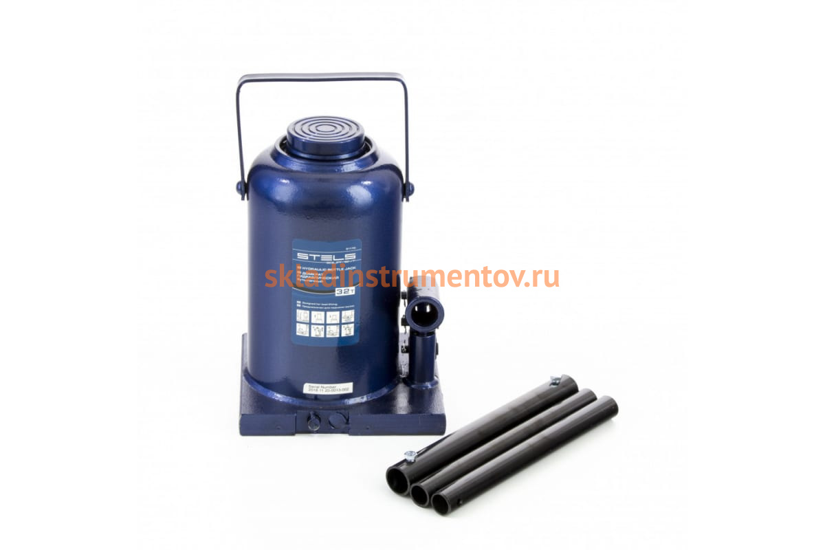 Гидравлический бутылочный домкрат 32 т, h подъема 260–420 мм STELS 51170 обладает высокой прочностью и хорошей грузоподъемностью. В комплекте идет рукоять, состоящая из трех частей, для более удобного подъема.