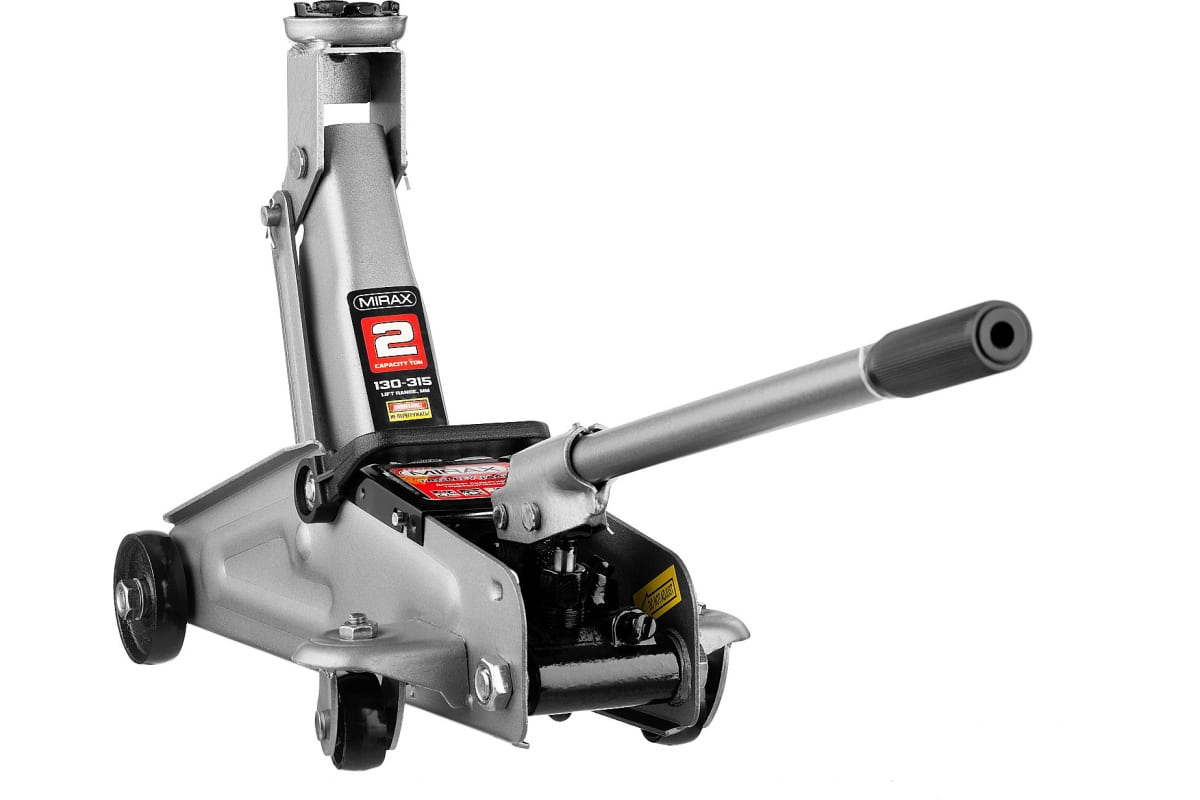 Гидравлический подкатной домкрат MIRAX 2т, 130-315мм, в кейсе 43252-2-K подходит для работы с современными автомобилями с небольшим клиренсом.