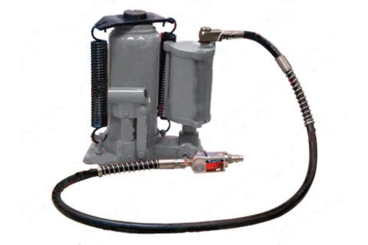 Пневмогидравлический бутылочный домкрат MATRIX 51105 изготовлен из сверхпрочной стали, устойчивой к внешним воздействиям окружающей среды. Данный инструмент оснащен двумя раздельными приводами: ручным и пневматическим. Опускание происходит за счет возвратных пружин.