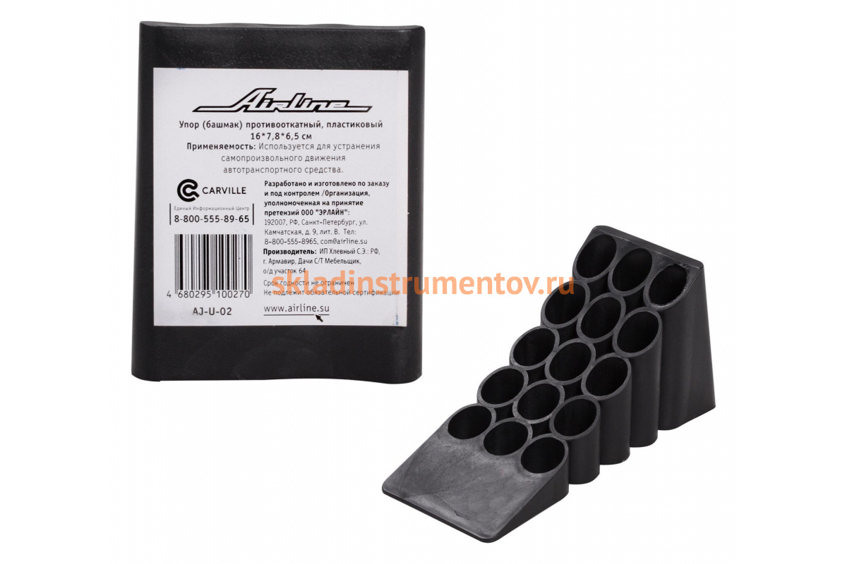 Противооткатный упор-башмак Airline AJ-U-02 помогает зафиксировать транспортное средство при проведении ремонтных работ. Выполнен из ударопрочного пластика и имеет ребристую поверхность.