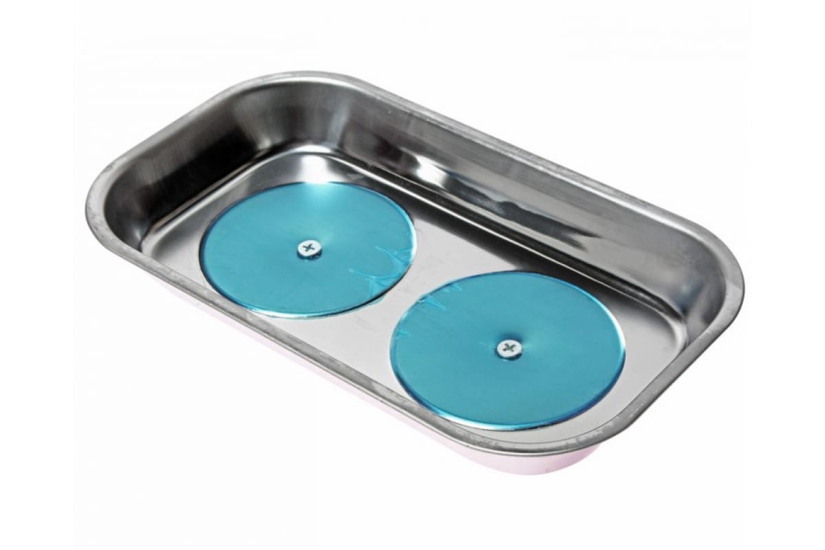 Магнитный поддон JTC 3726A - это универсальное приспособление, которое применяется как в профессиональной сфере (автосервис, строительная площадка, производство), так и в быту. Предназначен для складирования и хранения мелких крепежных изделий - гаек, винтов, болтов и т.д. Поддон оснащен двумя мощными магнитами.
