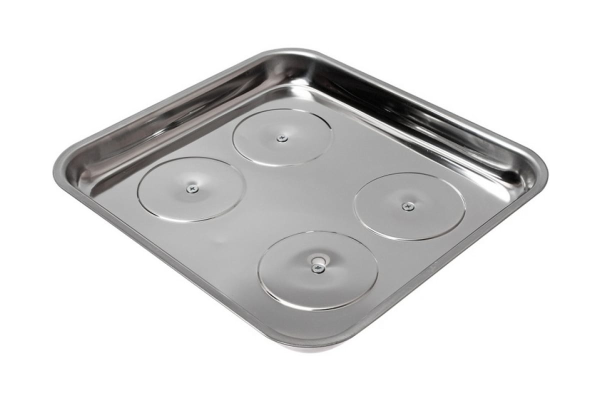 Магнитный поддон 294х273мм МАСТАК 194-00127 из нержавеющей стали используется для сбора мелких деталей и крепежных элементов при проведении ремонтных работ. Также подходит для хранения инструментов и прочих предметов. Изделие имеет 4 мощных магнита в резиновом кожухе, которые позволяют надежно крепить его на любых железных поверхностях под любым удобным углом.