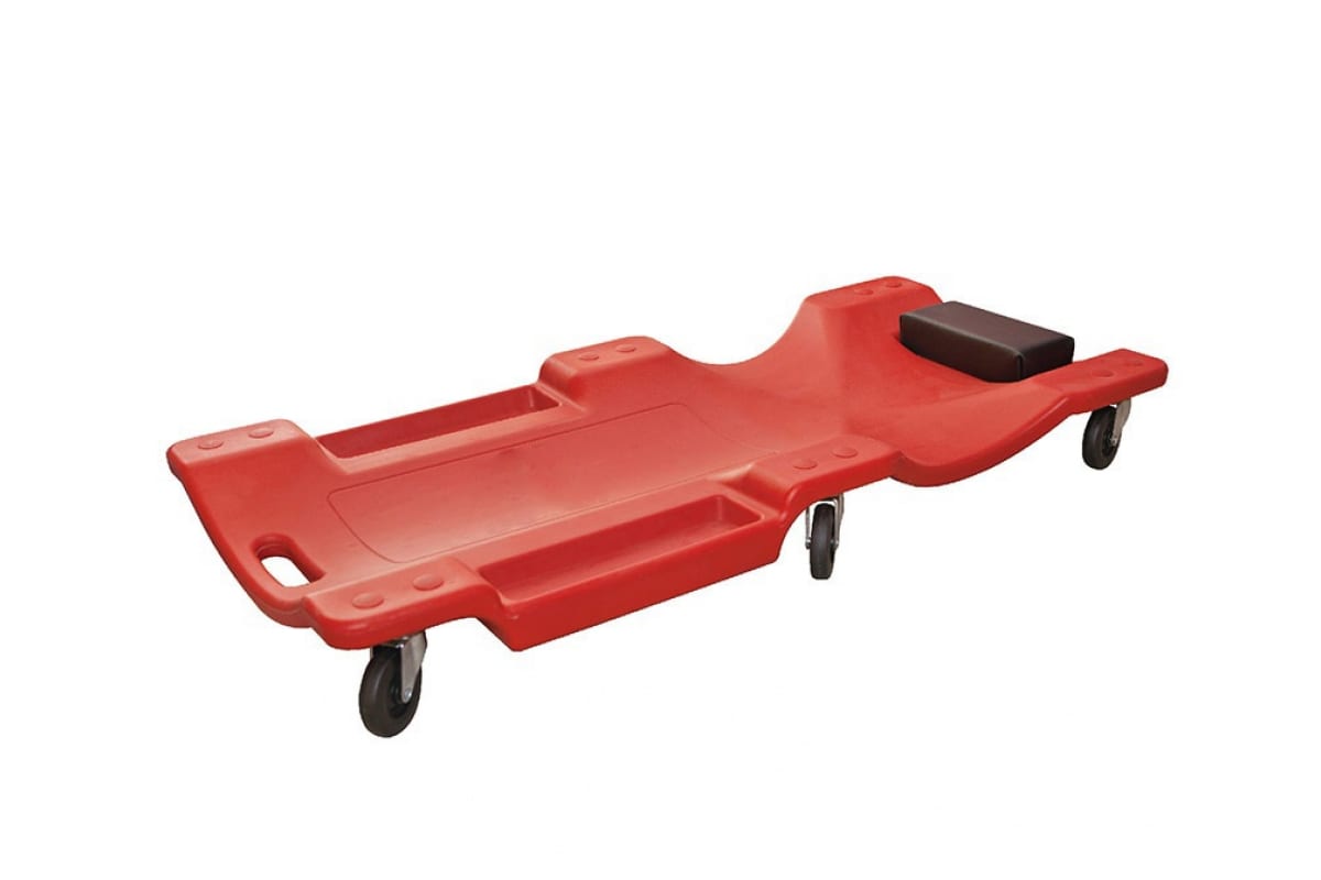 Изделие используют во время диагностики и технического обслуживания транспортных средств. Конструкция оснащена 6 колесами. Поролоновая подушка предусмотрена для максимального комфорта. Габаритные размеры модели: 1010х475х130 мм.