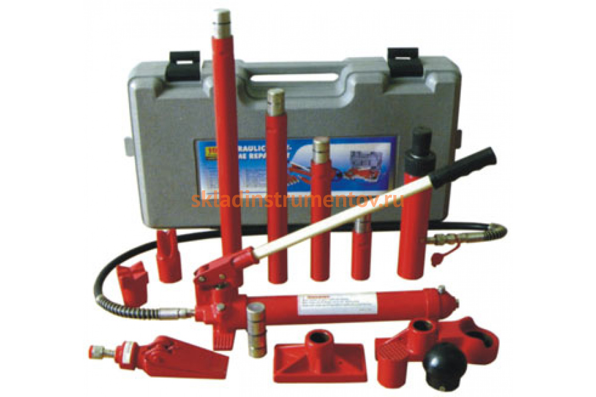 Гидравлический набор для правки кузова AIST 4т 67900915GM 00-00010574 включает в себя большое количество удлинителей и насадок, что упрощает выправку деформированного кузова.