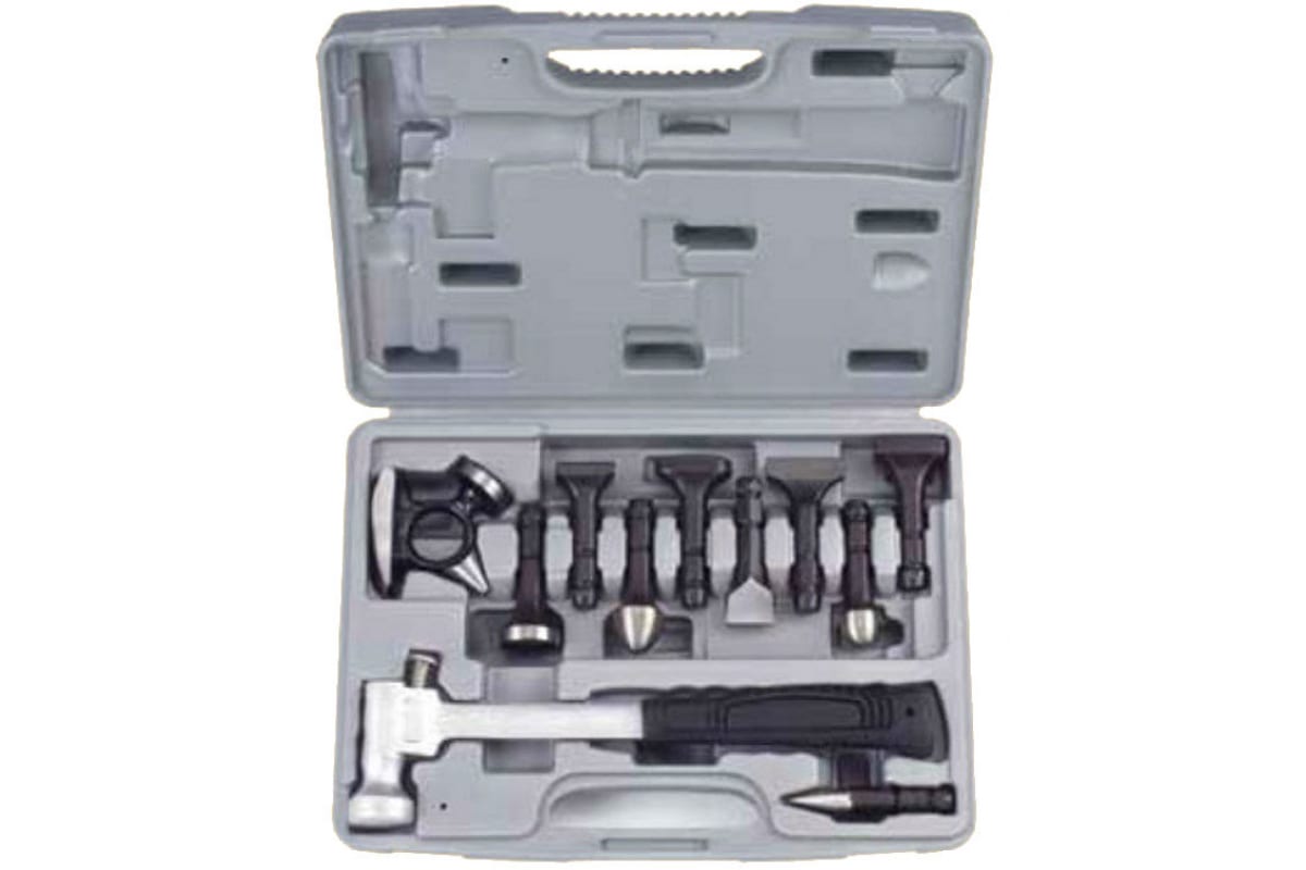 Рихтовочный молоток со сменными насадками FORCE 911M1 представляет собой набор из 11 предметов. Позволяет восстанавливать геометрию кузова автомобиля. В комплект входят бойки различной формы и размера, что значительно расширяет возможности применения.