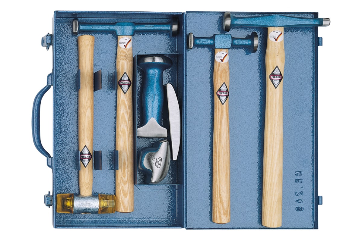 Набор рихтовочного инструмента 7 шт PICARD PI-0024900 представляет собой комплект специализированных инструментов для ремонта кузовов автомобилей и других металлических конструкций, получивших механические повреждения. Все инструменты отличаются высоким качеством и долговечностью в использовании. Рабочие части молотков и правки выполнены из прочной стали, которая гарантирует их повышенный рабочий ресурс. Молотки и киянка оснащены удобными деревянными рукоятками.