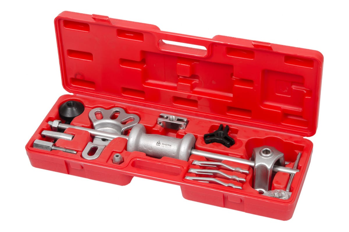 Универсальный обратный молоток с принадлежностями МАСТАК 100-40017C - это профессиональный инструмент, который может применяться как для снятия прикипевших элементов (например, подшипников), так и для выправления вмятин на кузове, крыле и других конструктивных деталей автомобиля. Большой комплект поставки (17 предметов) позволяет применять его при ремонте и обслуживании автомобилей большинства мировых марок.