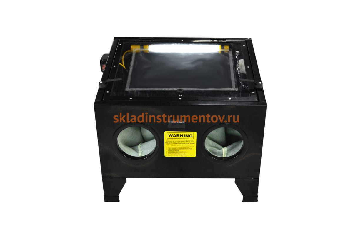 Пескоструйная камера WIEDERKRAFT 90 л, настольная WDK-82090 используется в авторемонтных мастерских, на СТО и крупных предприятиях для устранения ржавчины, окалины, краски и грунта с деталей. Аппарат так же можно применять для шлифовки шероховатостей и зачистки заусенцев.