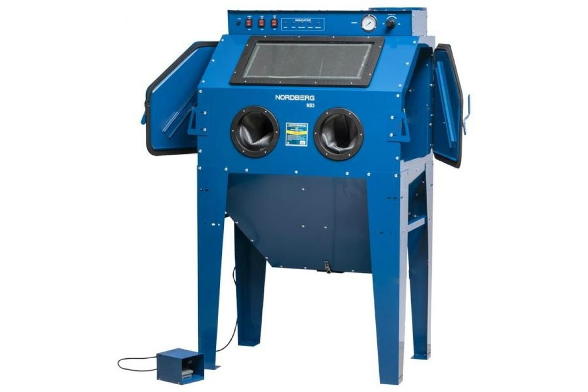 Пескоструйная камера, боковая загрузка 350 л NORDBERG NS3 представляет собой конструкцию для очистки деталей от краски, ржавчины или грунта. Благодаря прочным соединениям изделие обладает хорошей устойчивостью.