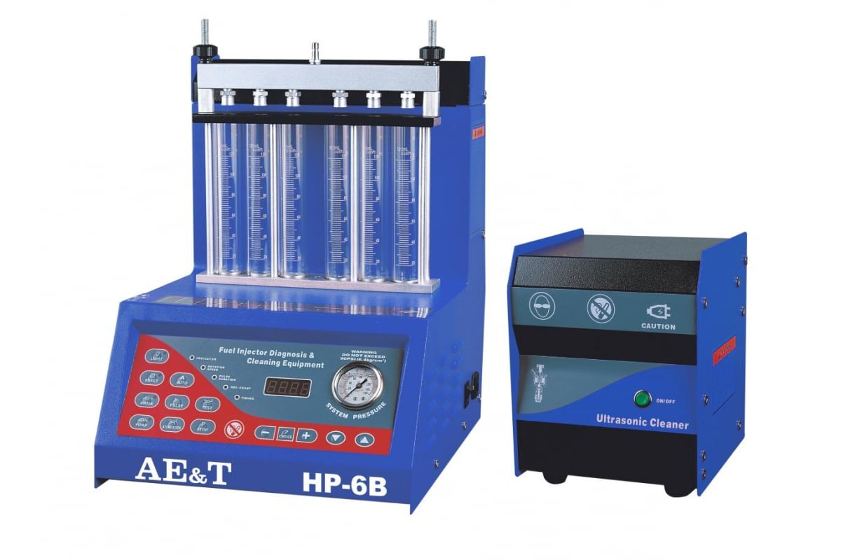 Установка для проверки с выносной ультразвуковой очисткой форсунок AE&T HP-6В отличается превосходной точностью диагностики. Ультразвуковая ванна поставляется отдельно и гарантирует качественную очистку форсунок. Оборудование работает от однофазной сети напряжением 220В. Манометр позволяет визуально контролировать рабочее давление приспособления. Имитация различных режимов работы двигателя существенно улучшает качество диагностики форсунок. Установка не требует от оператора приобретения специальных навыков для работы с ней.