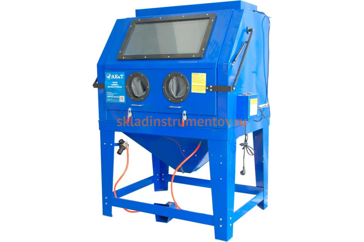 Пескоструйная камера 990л AE&T T06305 обладает герметичным корпусом и значительной мощностью, что позволяет успешно очищать металлические детали от ржавчины и краски. Размеры камеры допускают очистку деталей больших размеров. Для хорошего обзора камеры изнутри имеется большой экран. Изделие комплектуется двигателем на 1200 Вт. Перед началом работы можно отрегулировать мощность абразивного потока, установив форсунку 6 или 7 мм. Для защиты оператора установлены перчатки из каучука.