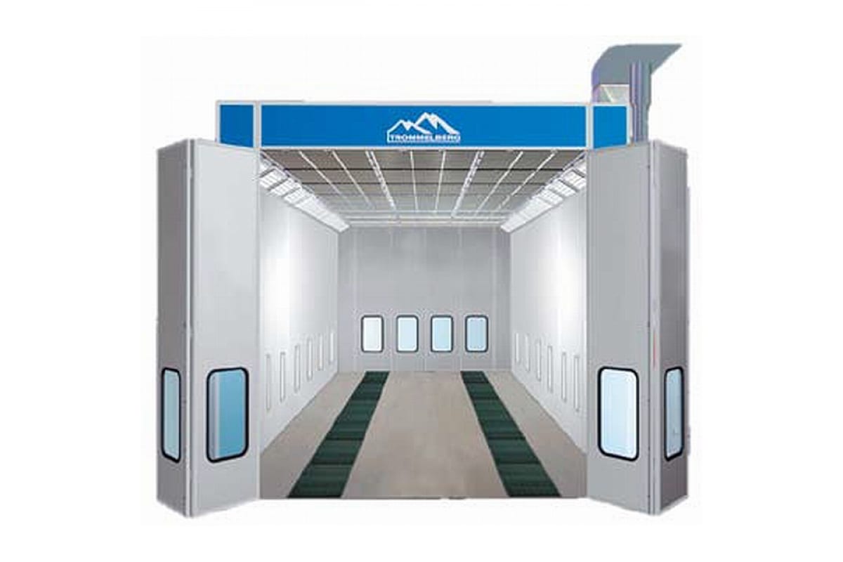 Окрасочно-сушильная камера Trommelberg SB-1555 SB1555 предназначена для выполнения лакокрасочных работ крупногабаритных транспортных средств (грузового транспорта, автобусов). Кабина выполнена из теплоизоляционных панелей, что позволяет хорошо удерживать нужную температуру. Для въезда транспорта камера оборудована четырехстворчатыми воротами. Для оператора и персонала предусмотрено наличие двух дверей. По функциональности камера отвечает всем европейским требованиям. Для вентиляции служат два блока, которые оснащены мощными двигателями с крыльчаткой. Для нагрева воздуха установлены две мощные фирменные горелки RIELLO. Они позволяют набрать нужную температуру за короткий промежуток времени. Управление производится с помощью пульта, на котором имеются индикаторы режимов работы.