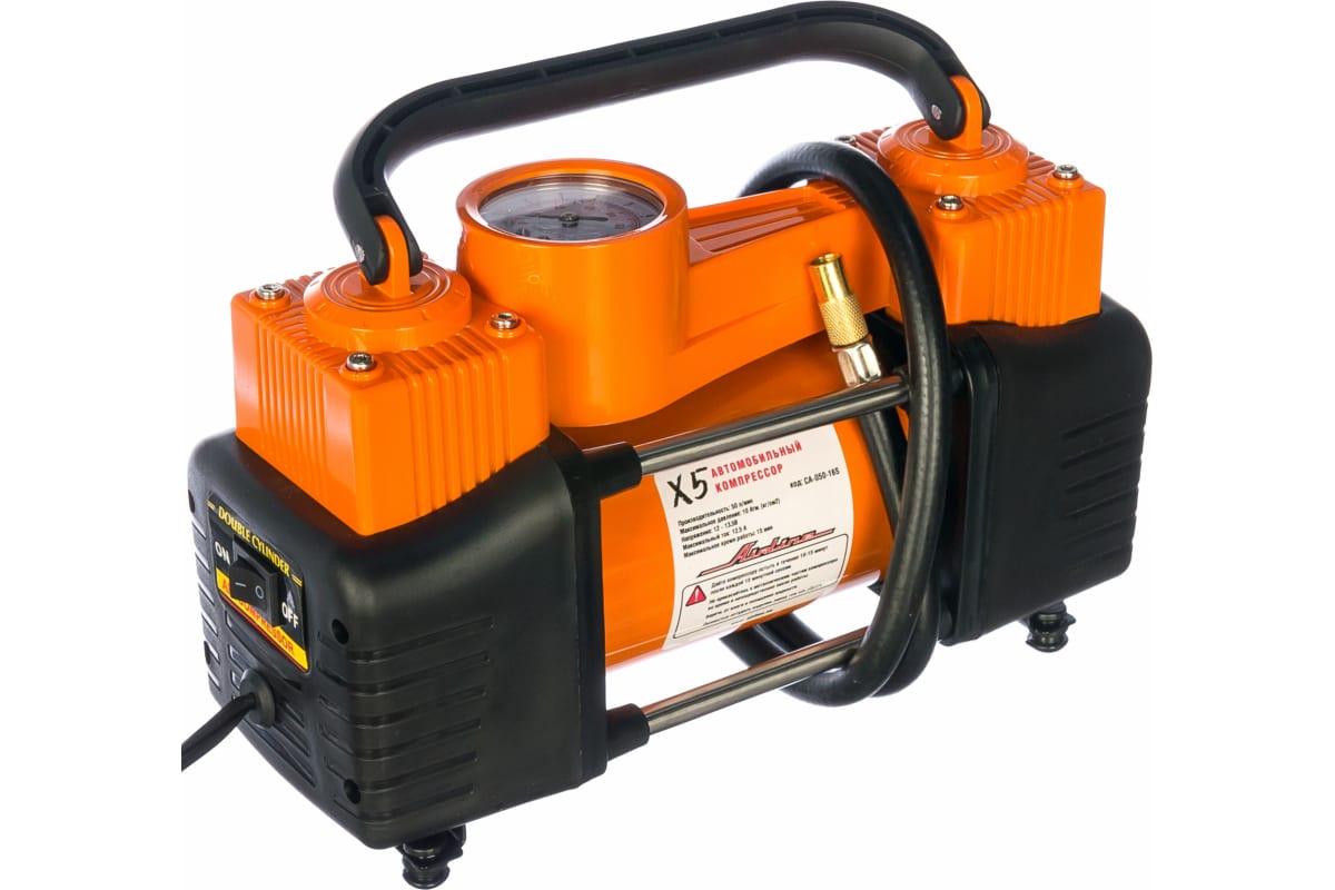Двухпоршневой компрессор Airline X5 STANDARD CA-050-16S представляет собой мощный агрегат для накачивания автомобильных шин. Металлический механизм отличается устойчивостью к поломкам вследствие удара, благодаря чему устройство перевозится в багажнике без риска случайных повреждений. Морозостойкий материал шланга и кабелей позволяет эксплуатировать модель на улице в зимний период. Накачивание колеса R14 от 0 до 2 атм занимает 1.5 минуты.