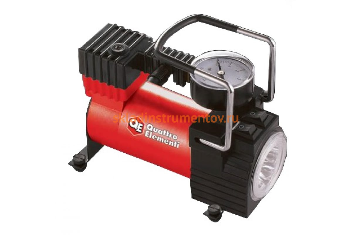 Автомобильный компрессор QUATTRO ELEMENTI Smart 35 772-623 поможет при непредвиденном спуске колеса у автомобиля, мотоцикла, а также в случаях, когда необходимо быстро накачать различные надувные изделия (лодка, матрас, бассейн). Устройство компактно, так что не займет много места, например, в багажнике автомобиля. Наличие фонаря позволяет использовать оборудование в темное время суток без дополнительных осветительных приборов. Компрессор не создает много шума. Производительность - 35 л/мин.