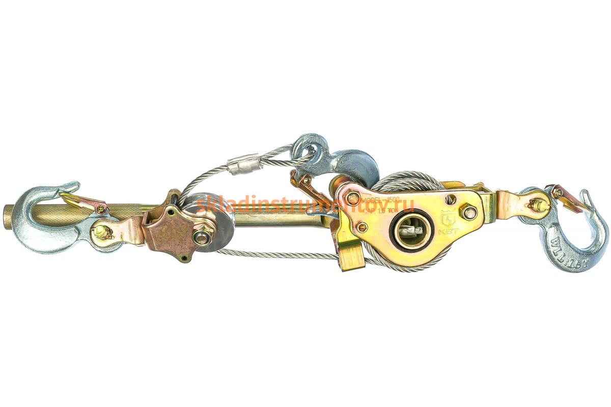 Ручная лебедка КВТ ЛР-15 57757 представляет собой качественное устройство для натяжения проводов СИП и оптоволоконных кабелей. Благодаря конструкции доступны два режима работы: с блоком (длина троса равна 1.6 метров, тяговое усилие составляет 1.5 тонн) и без блока (трос длиной 3 метра, усилие тяги равно 0.75 тонны). Модель оснащена тремя долговечными крюками с защитными скобами, что гарантирует ее высокую эффективность в работе.