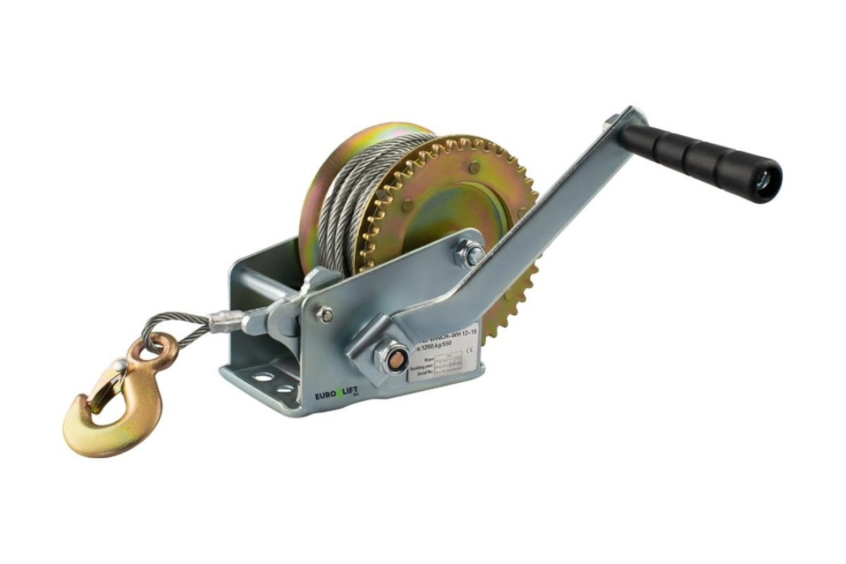 Барабанная лебедка (г/п 550кг, канат 15м) EURO-LIFT WH12-15А 0015601 используется для транспортировки грузов. Удобство использования заключается в наличии рукоятки и храпового механизма, который обеспечивает стопорение груза. Небольшой вес и компактные габариты заметно упрощают работу с лебедкой. Изделие комплектуется стальным тросом.