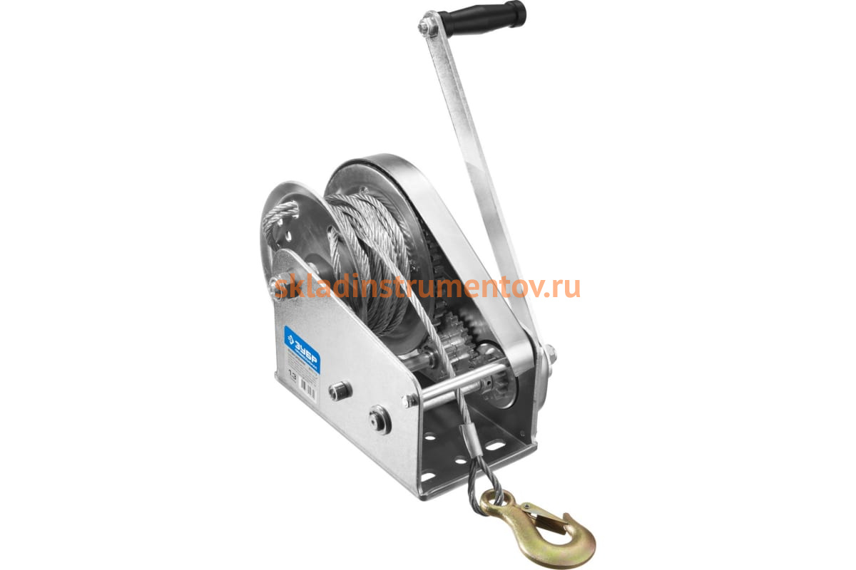 Ручная барабанная лебедка Зубр ПРОФЕССИОНАЛ 1.3т 8м 43117-1.3 предназначена для перемещения грузов весом до 1.3 тонны. Фрикционный механизм позволяет поднимать и опускать грузы в вертикальном положении. Корпус изготовлен из прочного материала. Рукоятка предназначена для наматывания троса на барабан вручную.