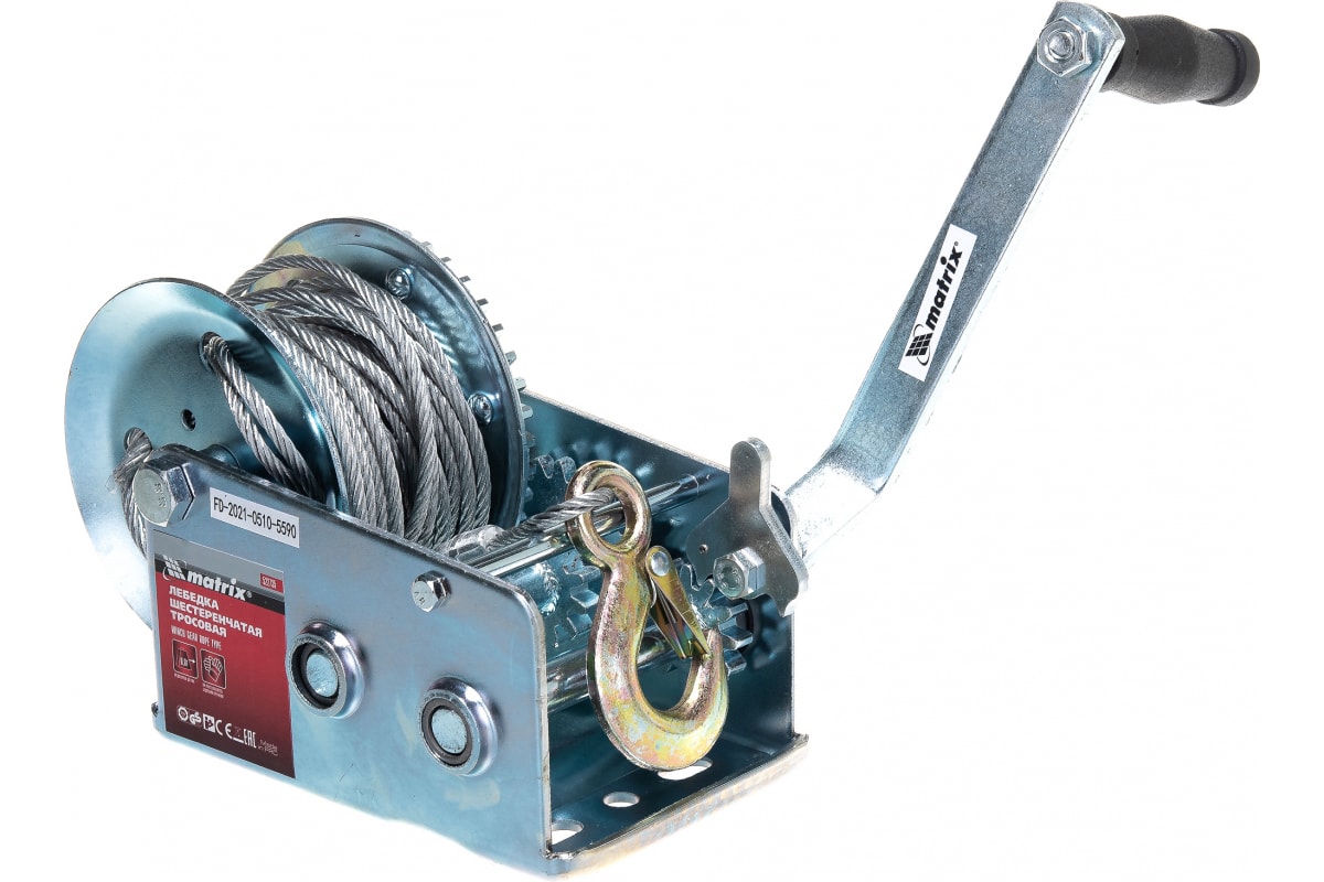 Шестеренчатая лебедка MATRIX 0.8т MATRIX 522735 имеет прочную стальную конструкцию. Все соединения надежно закреплены, что обуславливает надежность конструкции в течение длительного времени. Лебедка имеет простой механизм управления и не требует для работы подключения электроэнергии. Лебедка такого типа применяется для перемещения грузов в горизонтальной плоскости при проведении погрузочно-разгрузочных работ. Общая длина троса - 9 м, рабочая длина троса - 4.7 м.