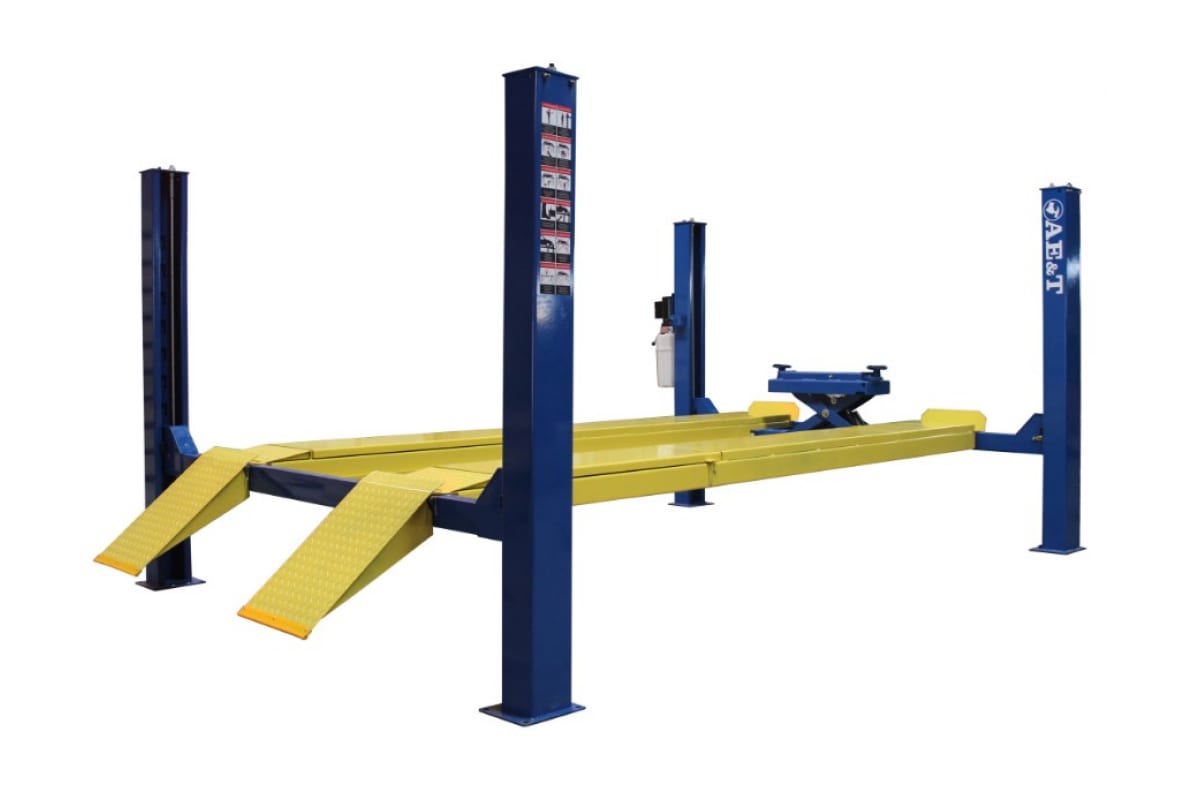 4-х стоечный подъемник для сход-развала с траверсой 380В AE&T F3.5-4 используется в процессе диагностики и ремонта автомобилей. Гидросистема и электропривод максимально экономят время и силы оператора. Специальные стопоры обеспечивают надежную фиксацию легковой машины на высоте. Для переключения подъемника на траверсу и наоборот достаточно повернуть рукоять крана. Система автоматизации исключает риск человеческой ошибки в процессе эксплуатации. Для удобства управления предусматривается пульт. Минимальная высота подъема составляет 175 мм. Расстояние между стойками равняется 3098 мм, между трапами - 1012 мм. Длина и ширина трапов равна 4200 мм и 476 мм соответственно. Для подъема площадки требуется 50 секунд.