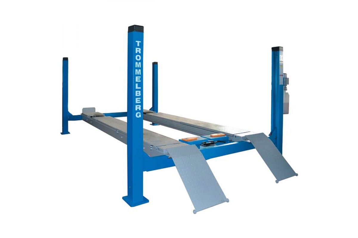 Электрогидравлический четырехстоечный автоподъемник Trommelberg TST455A подходит для подъема легковых и грузовых автомобилей массой до 5.5 тонн. Для удобного заезда транспорта имеются наклонные металлические пластины. Данная конструкция используется для проведения диагностических и ремонтных работ, а также развал-схождения. Траверса для вывешивания подвески ещё больше расширяет возможности ремонта.