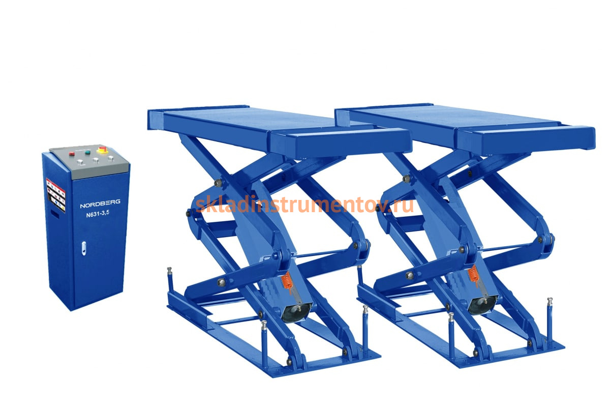 Ножничный подъемник 3,5т, 380В NORDBERG N631-3,5 380 применяется в автомастерских для проведения ремонтных и иных работ с автомобилями различного класса массой до 3500 кг. Раздельные платформы позволяют подобрать оптимальную ширину конструкции для любого помещения. Использование ножничной системы подъема упрощает процесс и делает время поднятия не более 55 секунд. Регулируемая длина платформы ограничивается диапазоном 1450-1750 мм. Ширина каждой платформы: 550 мм. Основание имеет меньшую длину, что позволяет устанавливать конструкцию в пространствах со сложным рельефом пола.