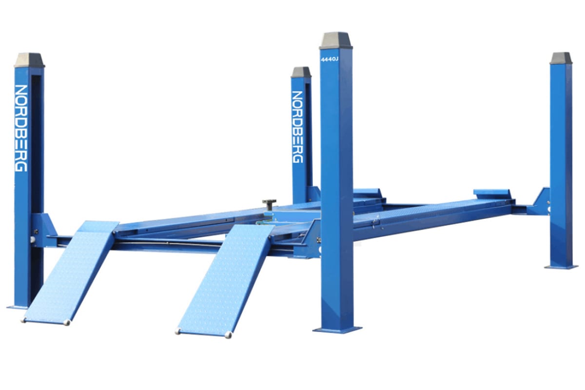 Подъемник 4х 4т. c траверсой, 380В NORDBERG 4440J_380V удобен в использовании в автомастерских и различных сервисах. Небольшое время подъема/опускания точно рассчитано и исключает перегрузку механизмов при предельном весе груза.