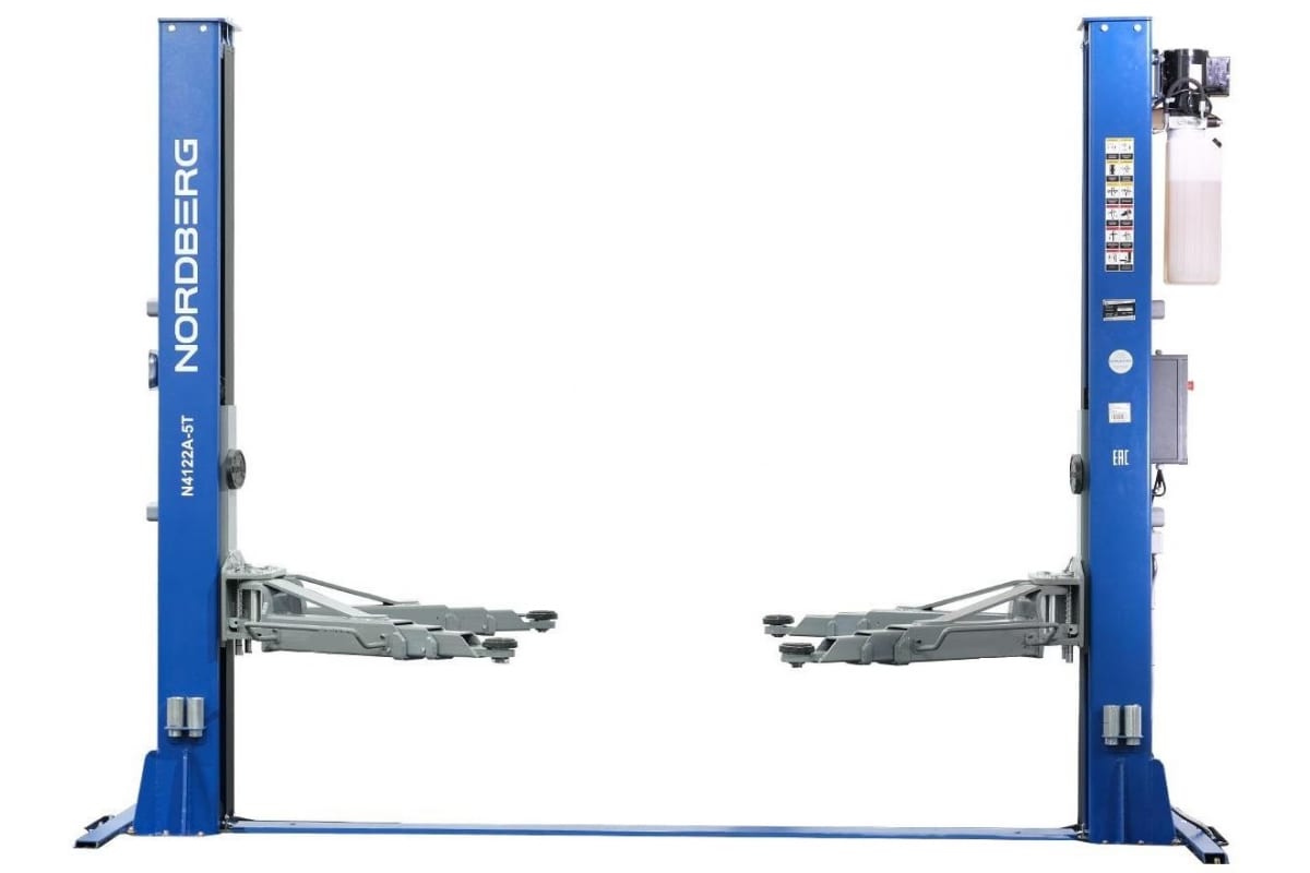 2х-стоечный подъемник NORDBERG 5 т, 380 В N4122A-5T используется в профессиональных автосервисах для проведения работ по обслуживанию и ремонту автомобилей. Агрегат оснащен 3х-секционными подхватами с регулировкой длины – 880-1720 мм. Подъемник имеет высокую прочность благодаря дополнительным ребрам жесткости внутри колонн. Резиновая защита предохраняет двери автомобиля от повреждений. Управление подъемником производится с помощью пульта. Модель оснащена системой электромагнитного снятия стопоров.