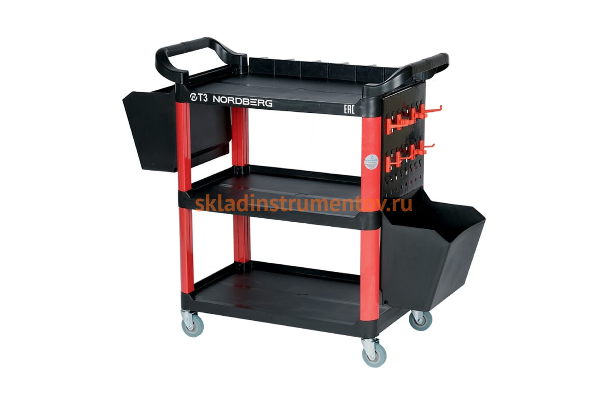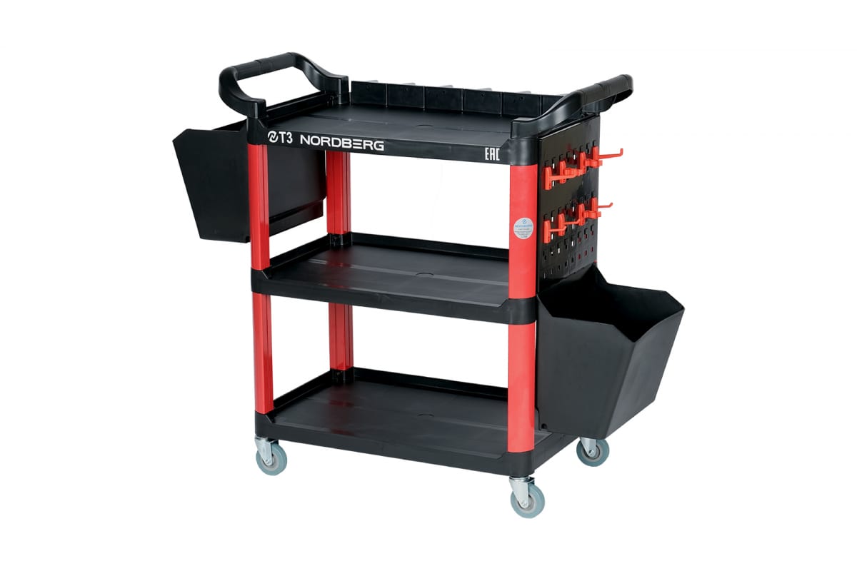 Тележка с пластиковыми полками NORDBERG, 2 коробки, T3 состоит из трех открытых секций и двух вместительных коробок по бокам. Благодаря маневренным колесам полку можно без труда перемещать по рабочей зоне. Колеса дополнены тормозом. Конструкция выполнена из прочного и долговечного пластика. Идеально подходит для эксплуатации в тюнинг-ателье.