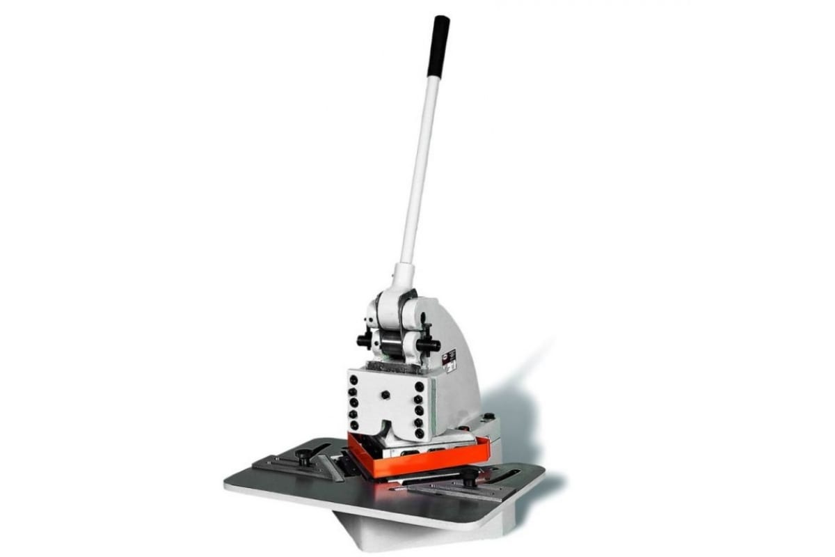 Вырубной штамп Proma PNP-4 25500004 используется для слесарных работ в небольших производствах. Штамп вырубает в листовом металле сегменты под углом 90 градусов. Надежный передаточный механизм развивает усилие на штоке до 4 тонн. Благодаря тяжелой конструкции (95 кг) станок устойчив. Передвижные регулируемые упоры делают работу точной.