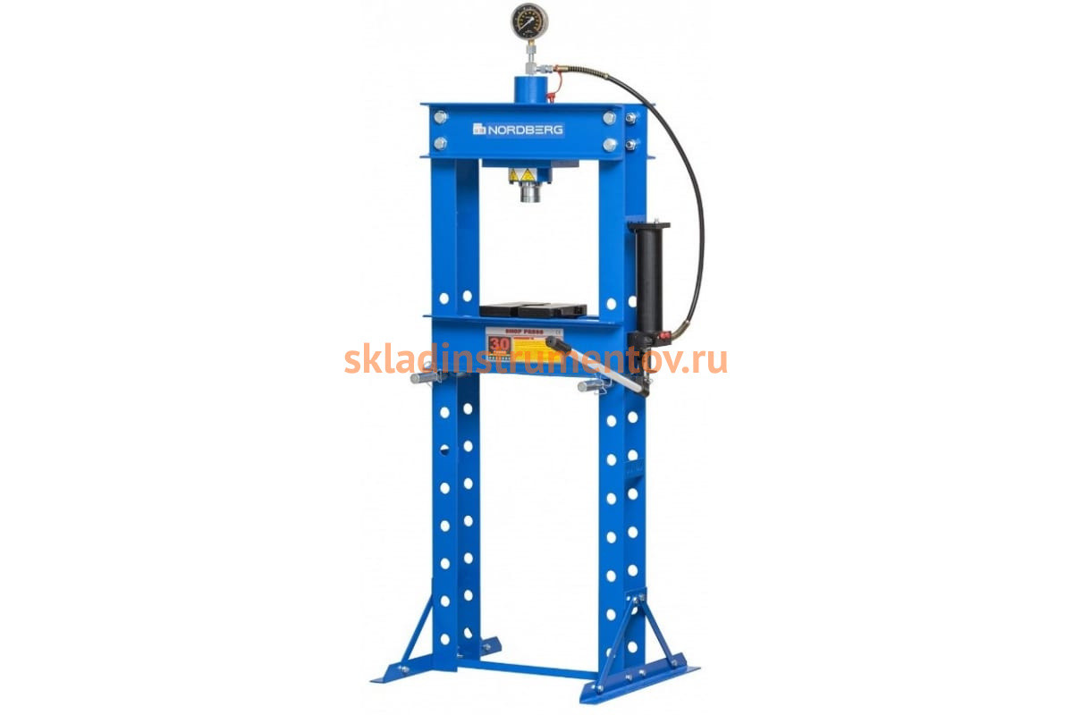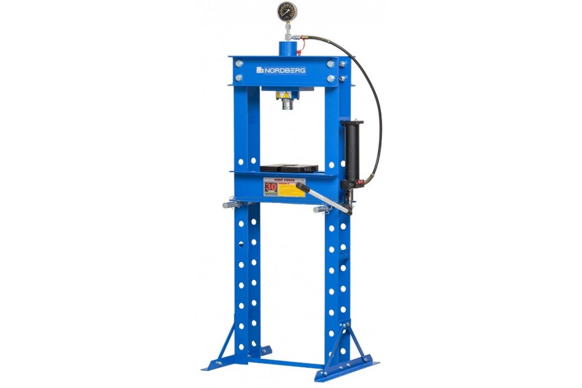 Гидравлический пресс NORDBERG ECO N3630L представляет собой качественное оборудование для автосервиса или ремонтной мастерской. Гидросистема обеспечивает усилие давления величиной 30 т без необходимости задействования физических сил пользователя. В опорах модели есть отверстия для фиксации рабочего стола на различной высоте. Рама пресса сварена из металлических деталей, что гарантирует ее жесткость и долговечность.