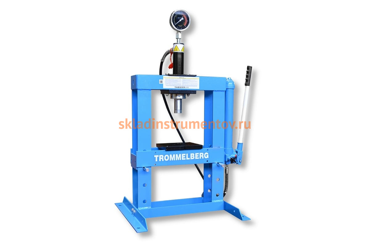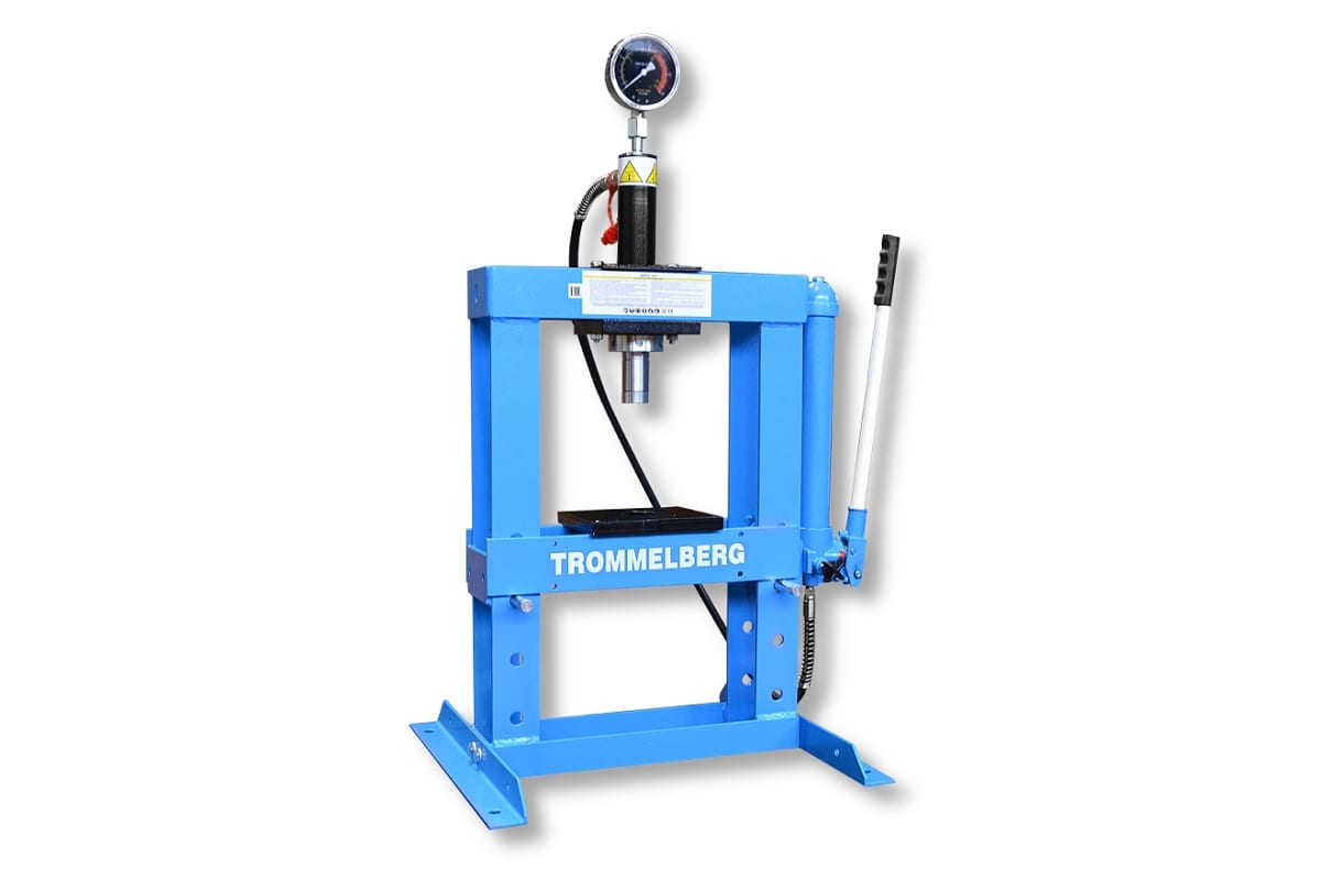Настольный пресс 10т с манометром Trommelberg SD261210 используется профессиональными автослесарями, а также любителями для монтажа и демонтажа подшипников, втулок и прочих деталей автомобилей. Стол шириной 340 мм регулируется в трех положениях, при этом максимальное рабочее пространство составляет 364 мм. Данное оборудование просто в обслуживании и удобно в эксплуатации.