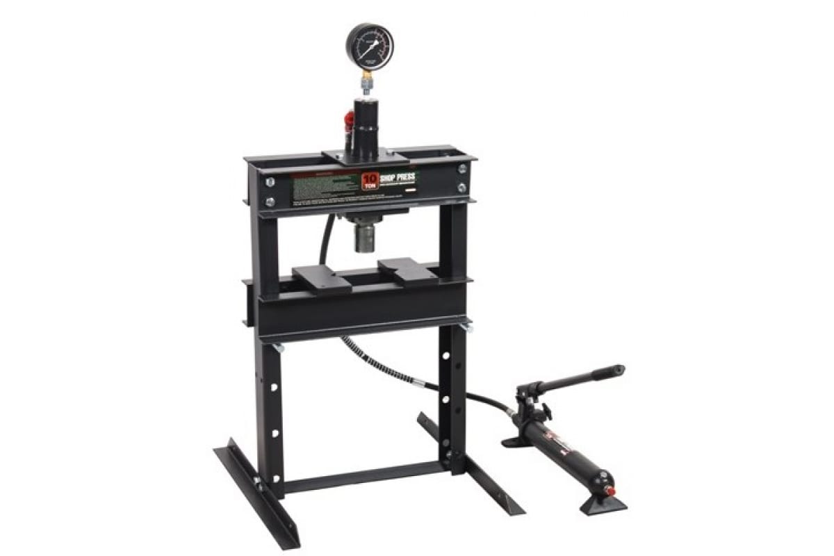 Настольный гидравлический пресс ROCKFORCE 10т RF-0901E-1 не опрокидывается в процессе эксплуатации благодаря устойчивому Н-образному основанию.