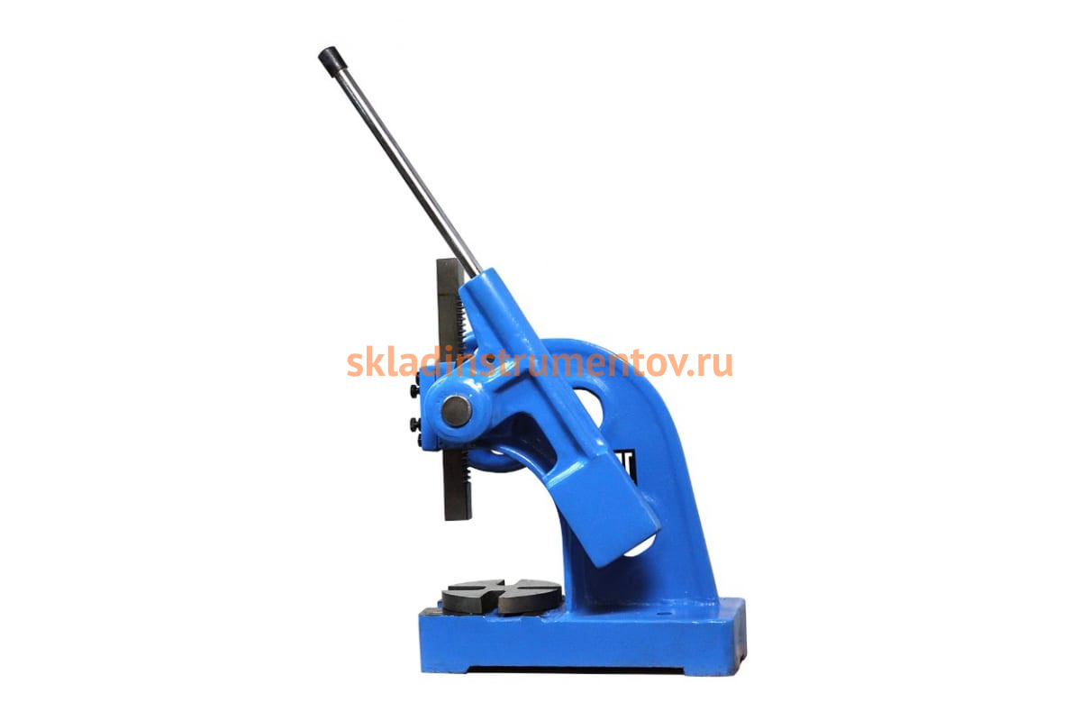 Рычаг с храповым механизмом обеспечивает удобство в работе. Максимальная высота детали, с которой работает пресс, составляет 180 мм.