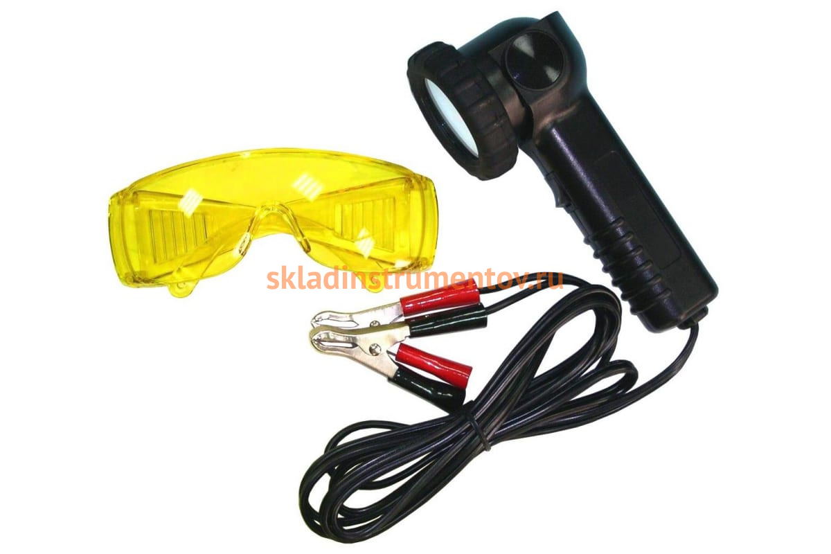 Течеискатель хладагента кондиционеров Станкоимпорт KA-7301 предназначен для выявления утечки хладагента в системе кондиционирования автомобильной техники. Для проверки в систему заливают фреон с красителем, светящимся в ультрафиолетовом излучении. Затем с помощью УФ-фонаря определяют место течи. Приспособление оснащено зажимами типа "крокодил" для работы от аккумулятора автомобиля. Фонарь имеет поворотную головку и противоударную накладку для удобства использования. Длина кабеля составляет 2.4 м. В фонаре применяется лампа MR-16 (12V, 50W). В комплекте поставляются очки со светофильтром жёлтого цвета для более чёткого восприятия утечек и защиты глаз. Данный течеискатель прост в эксплуатации.