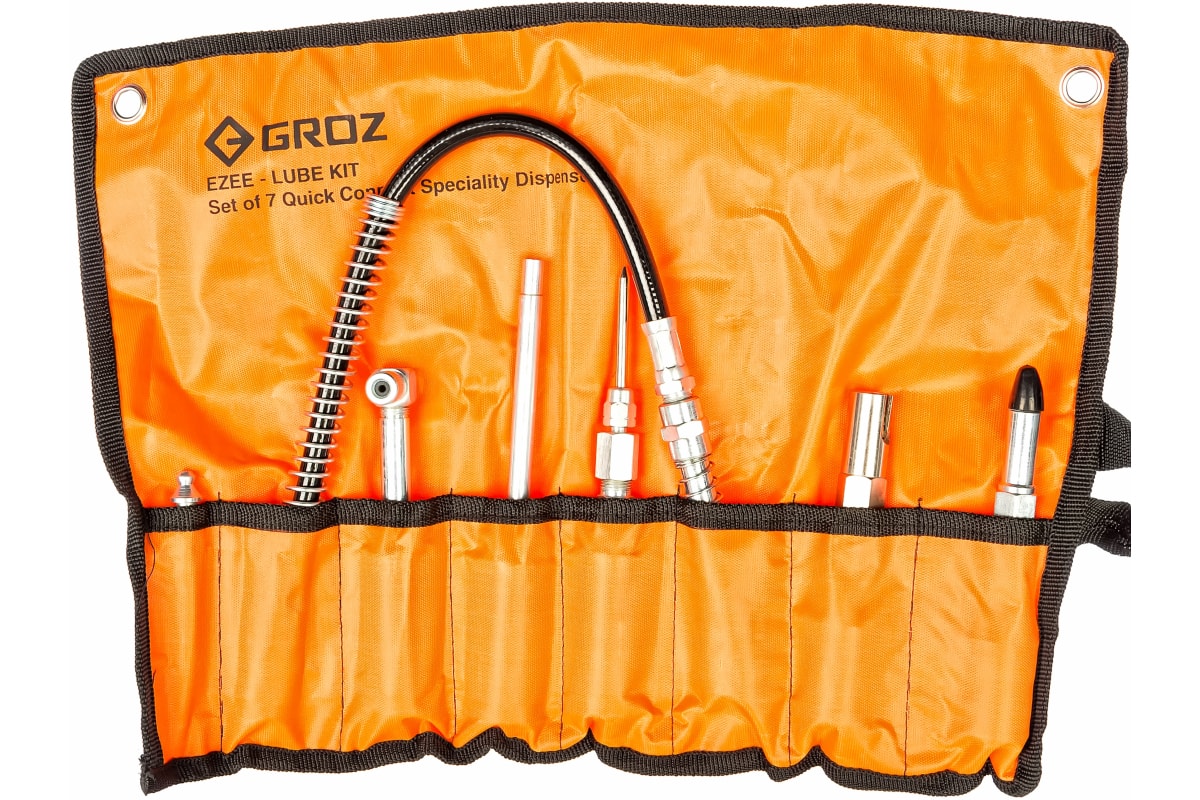 Многоцелевой набор адаптеров для смазки к ручным шприцам GROZ GR44950 - GAK/7 включает в себя разнообразные быстросъемные насадки, которые помогут осуществить различные виды смазочных работ. Комплект инструментов подходит для обычных и угловых масленок, закрытых подшипников, а также нагнетания смазочных материалов в места с ограниченным доступом.